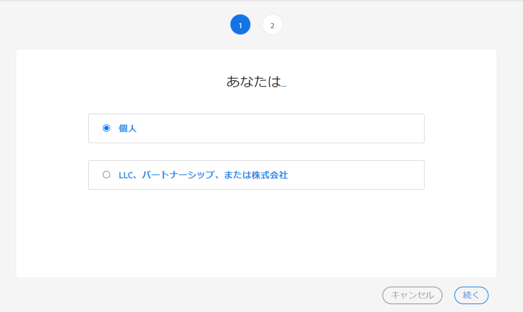 「個人」を選択して「続く」をクリック。