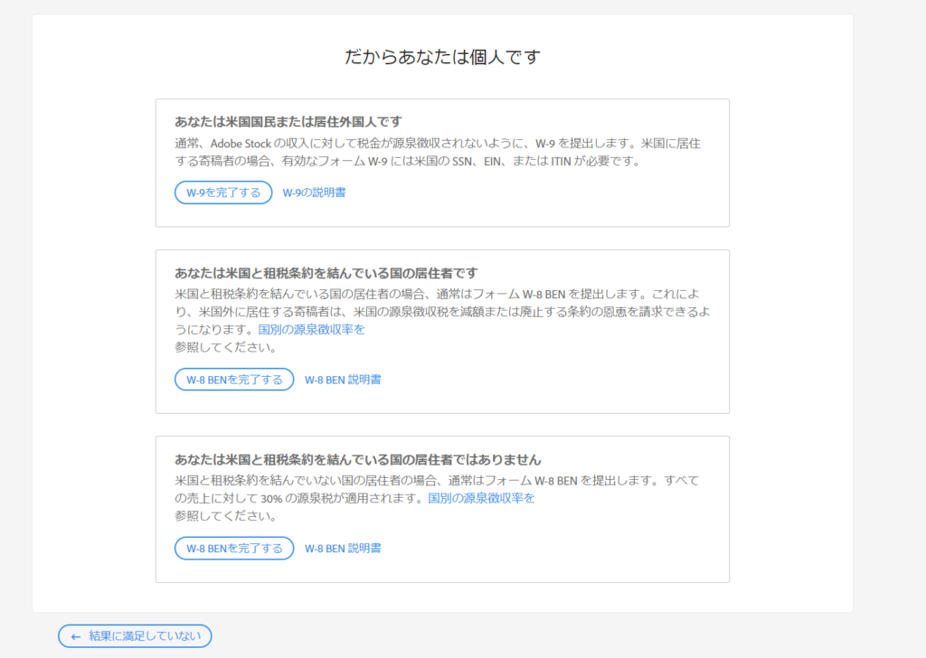 (アメリカ在住の方や企業から収入を得る場合の人は、また別の種類のフォームを使用します)