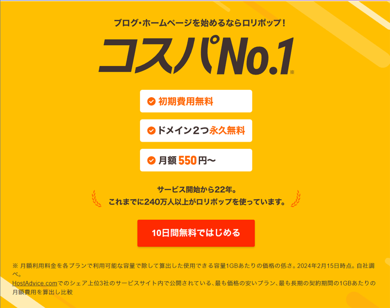 ロリポップは月額99円から