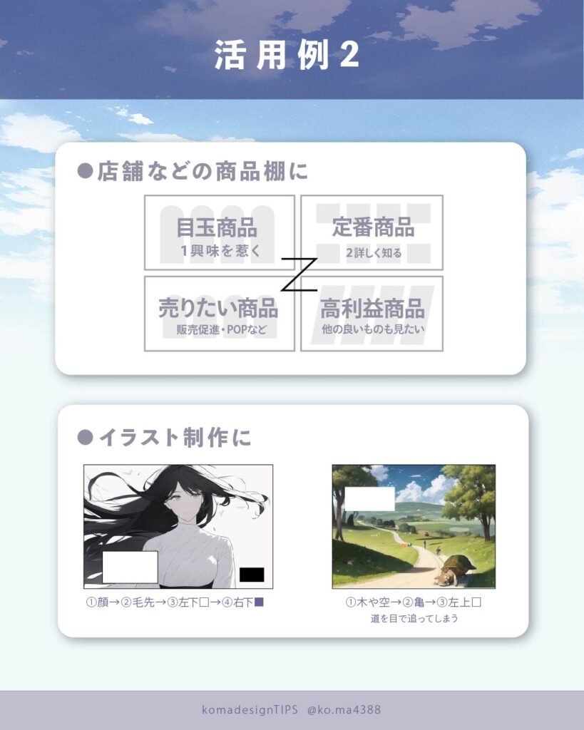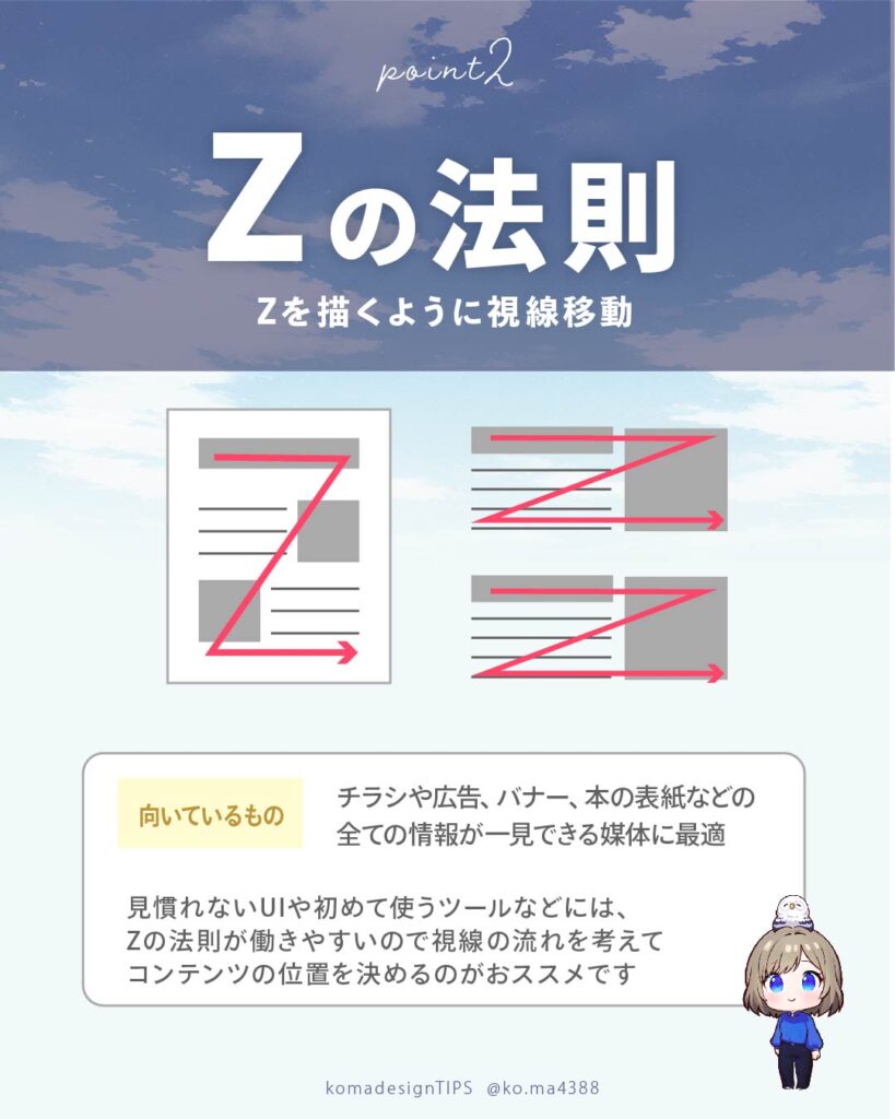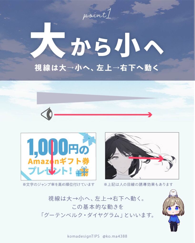 視線は大→小へ、左上→右下へと動きます。