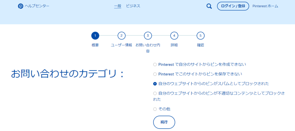 Pinterest のサポートページはこちら。https://help.pinterest.com/ja/contact