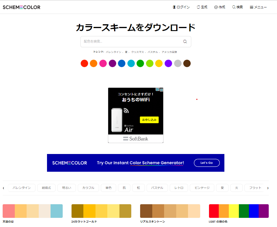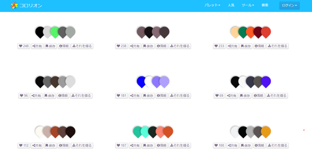 他の人が登録した色の組み合わせを見れる他、ランダムに色生成をしてくれます