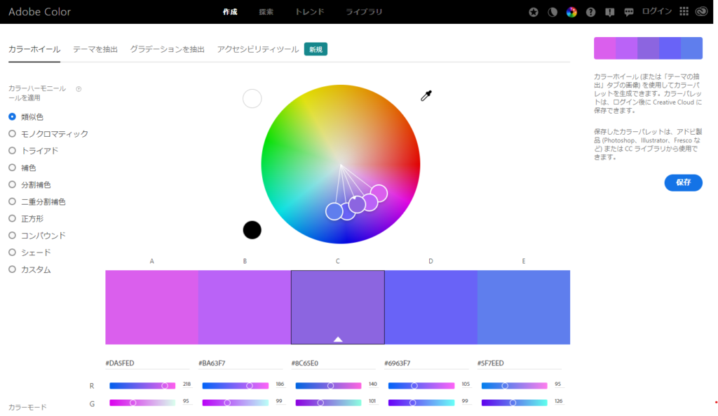 Adobeが提供するカラーイメージのサイトです。