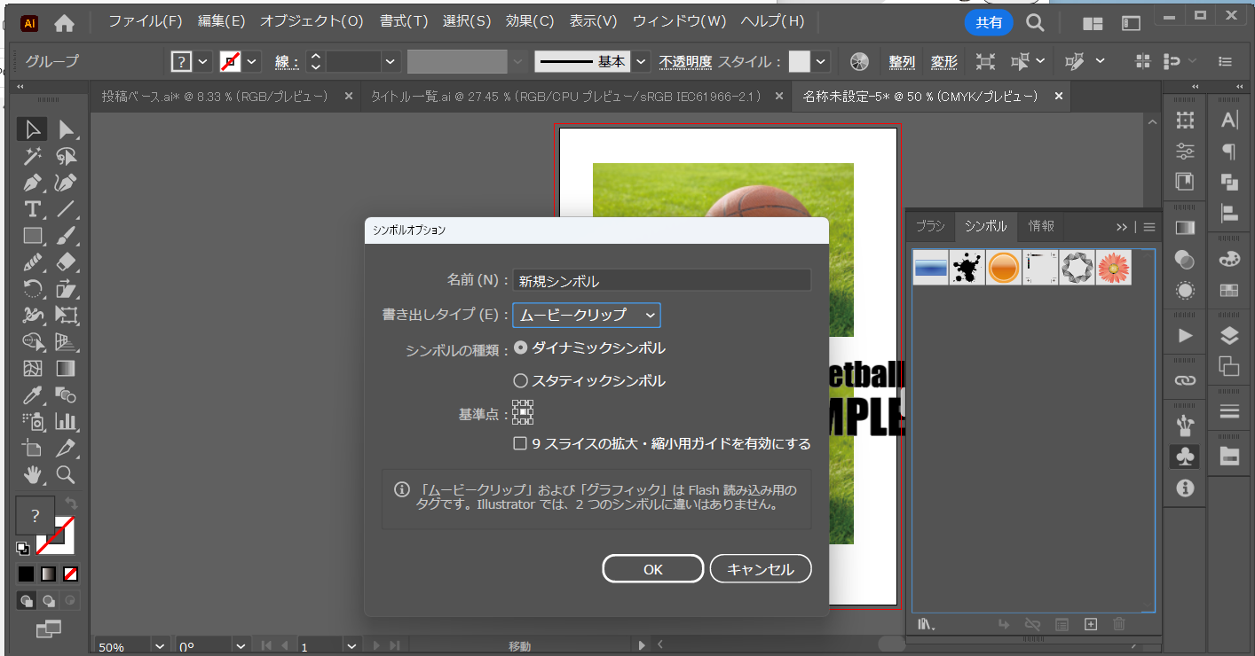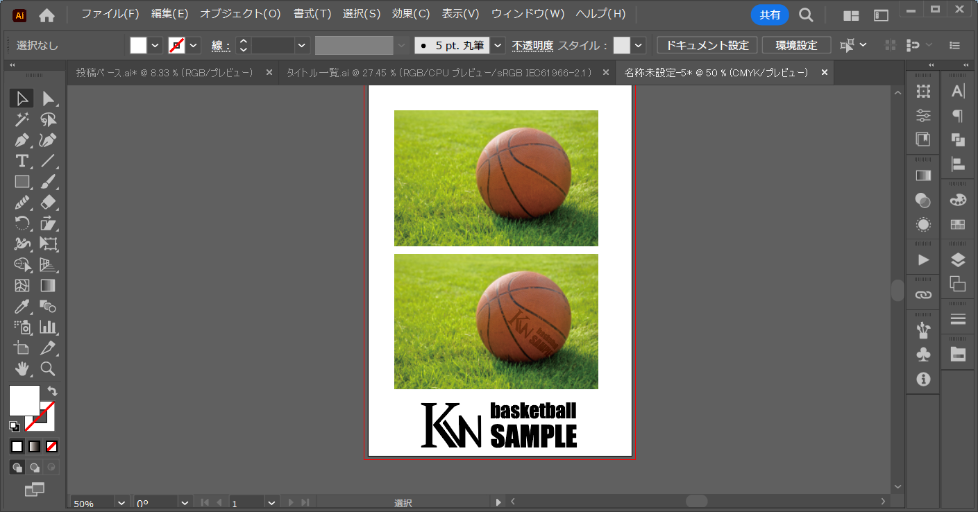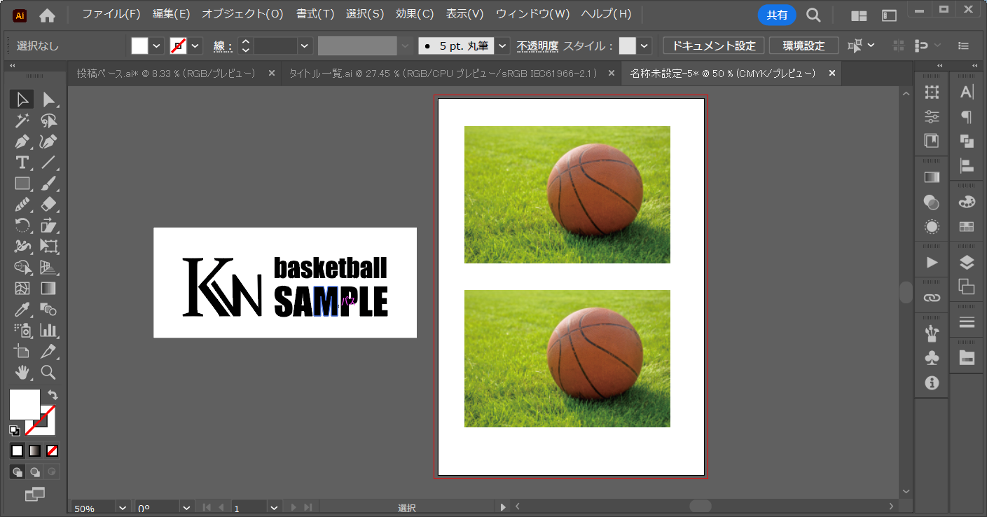 ボールにロゴを配置したりなど、合成をイラレ上で行いたい方に向けて